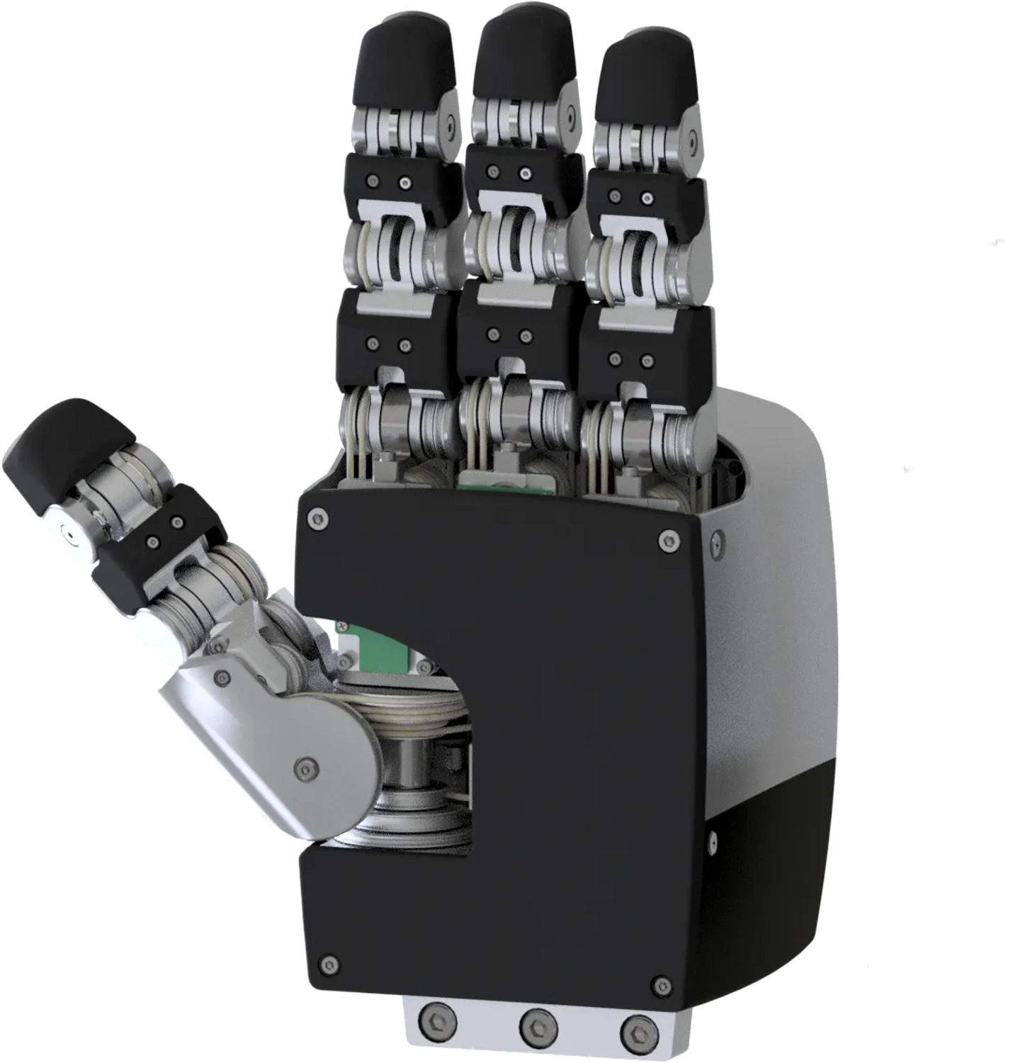 Anodized Aluminum alloy skeleton, high-friction silicone fingertips, and rubber "skin" covers