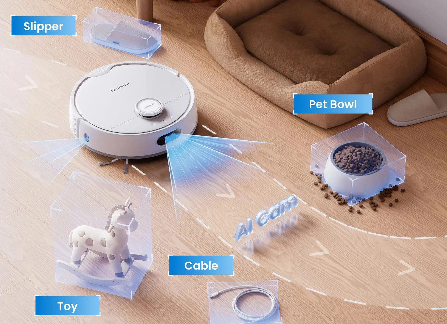 Can SwitchBot K11+ navigate dark rooms and cables like SwitchBot S20?