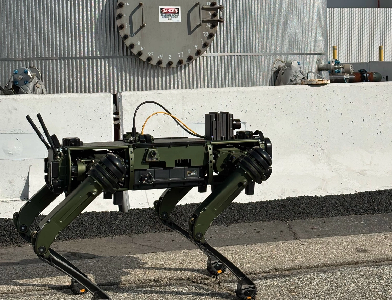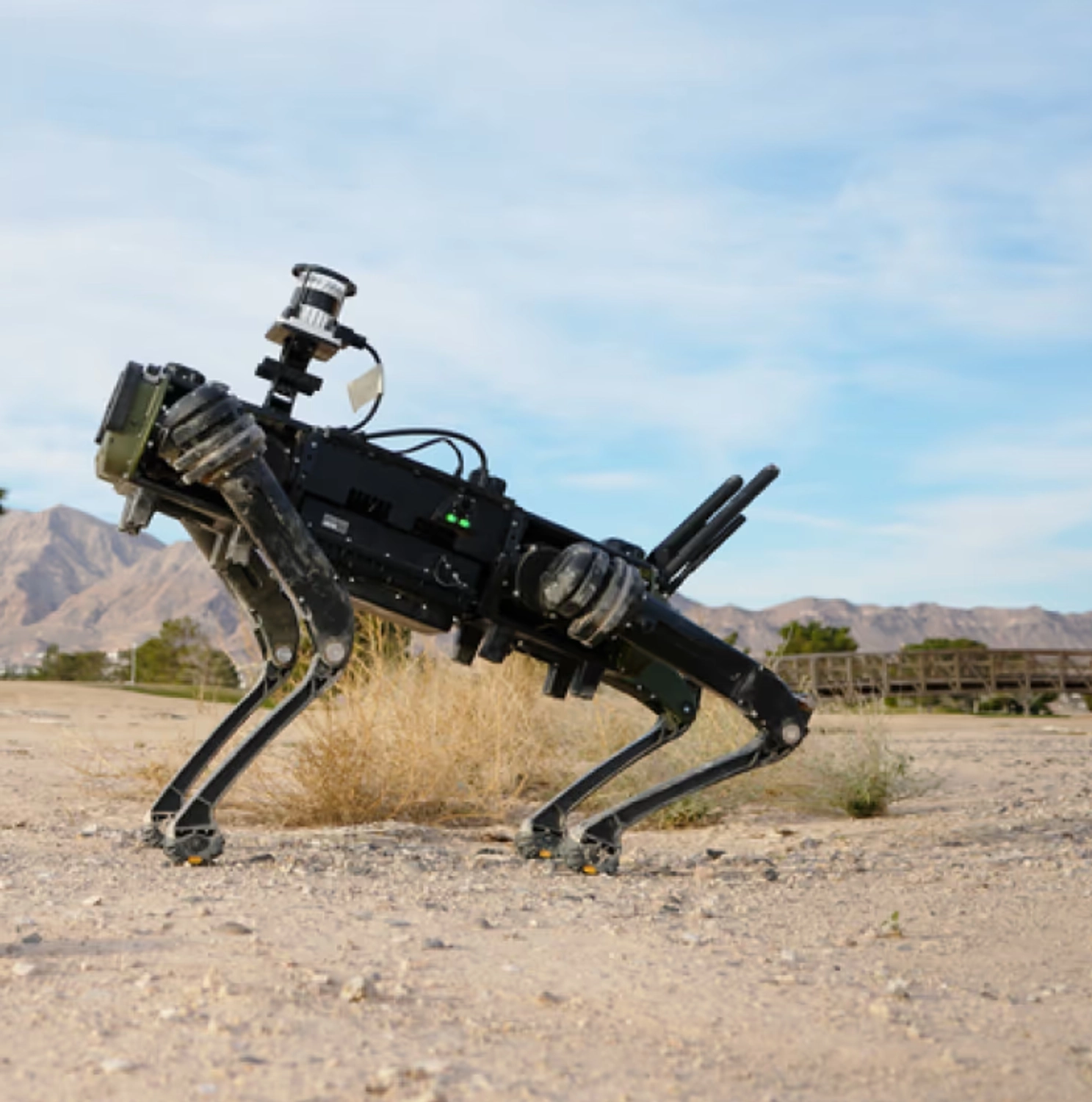 According to Ghost Robotics, Vision 60 traverses complex terrain including rocks, sand, hills, stairs, and steep embankments. The system operates across extreme temperature ranges and can function in dusty, wet environments. The platform includes blind-mode navigation enabling operation when vision sensors fail, and can recover from slips or falls to maintain mission continuity.