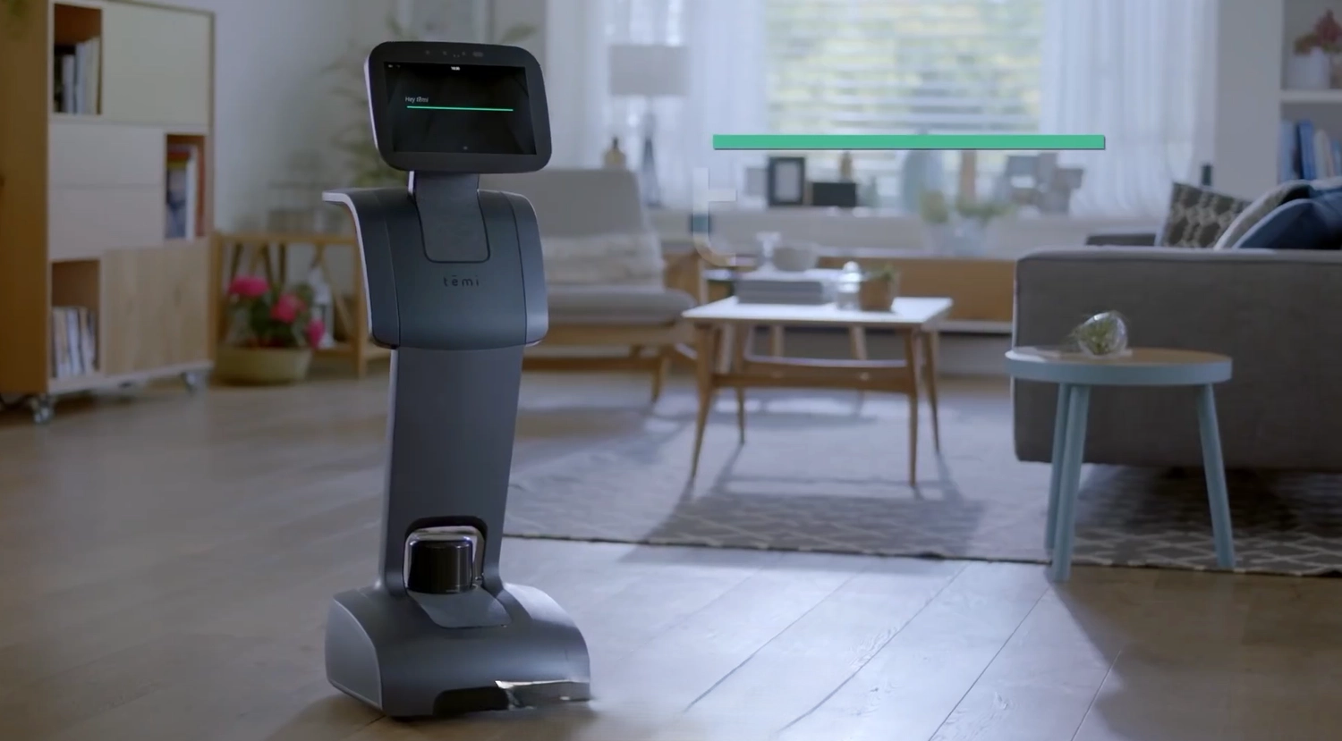 Temi is an autonomous mobile robot equipped with a 13.3-inch touchscreen display, designed to function as a personal AI assistant for businesses and service environments. According to the manufacturer, it addresses the need for remote presence, task automation, and human-robot interaction in retail, hospitality, healthcare, and corporate settings.
